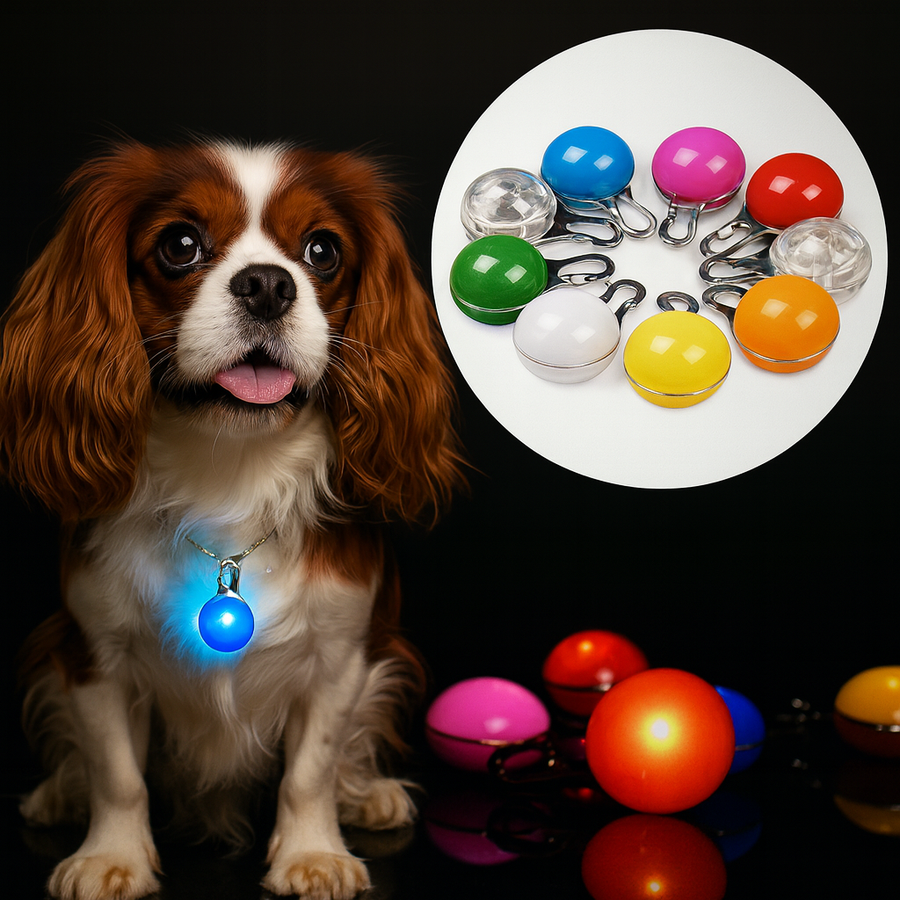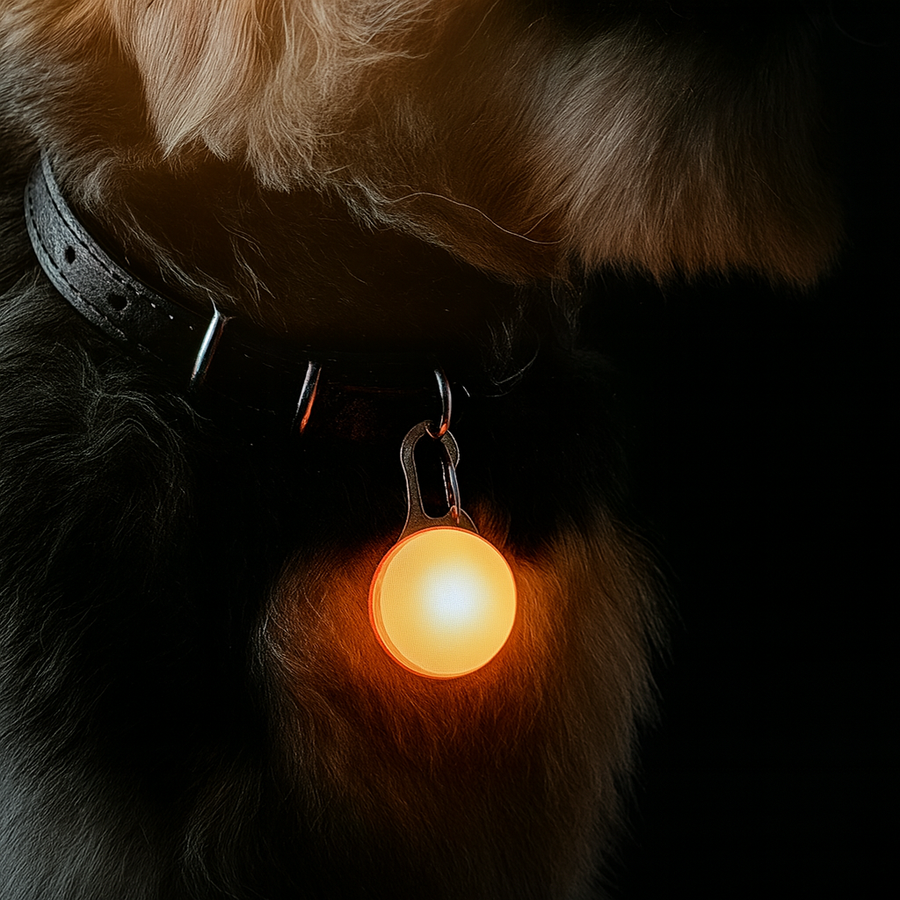 Lysande hundsmycke – en smart och portabel LED-pendel som gör din hund synlig upp till flera hundra meter bort. Den lilla lampan fästs enkelt på halsbandet eller selet och lyser klart i mörkret.